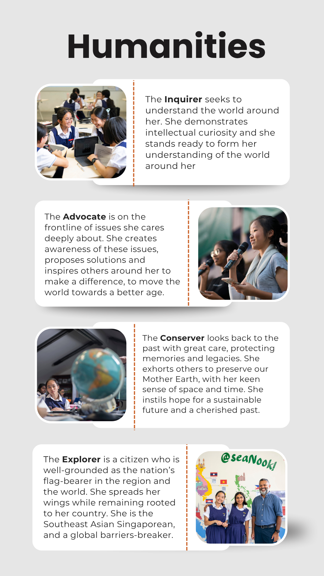 An annual overseas trip to Asia or Southeast Asia destinations for multi-disciplinary learning that cuts across Humanities subjects (History, Geography and Inquiry & Advocacy).