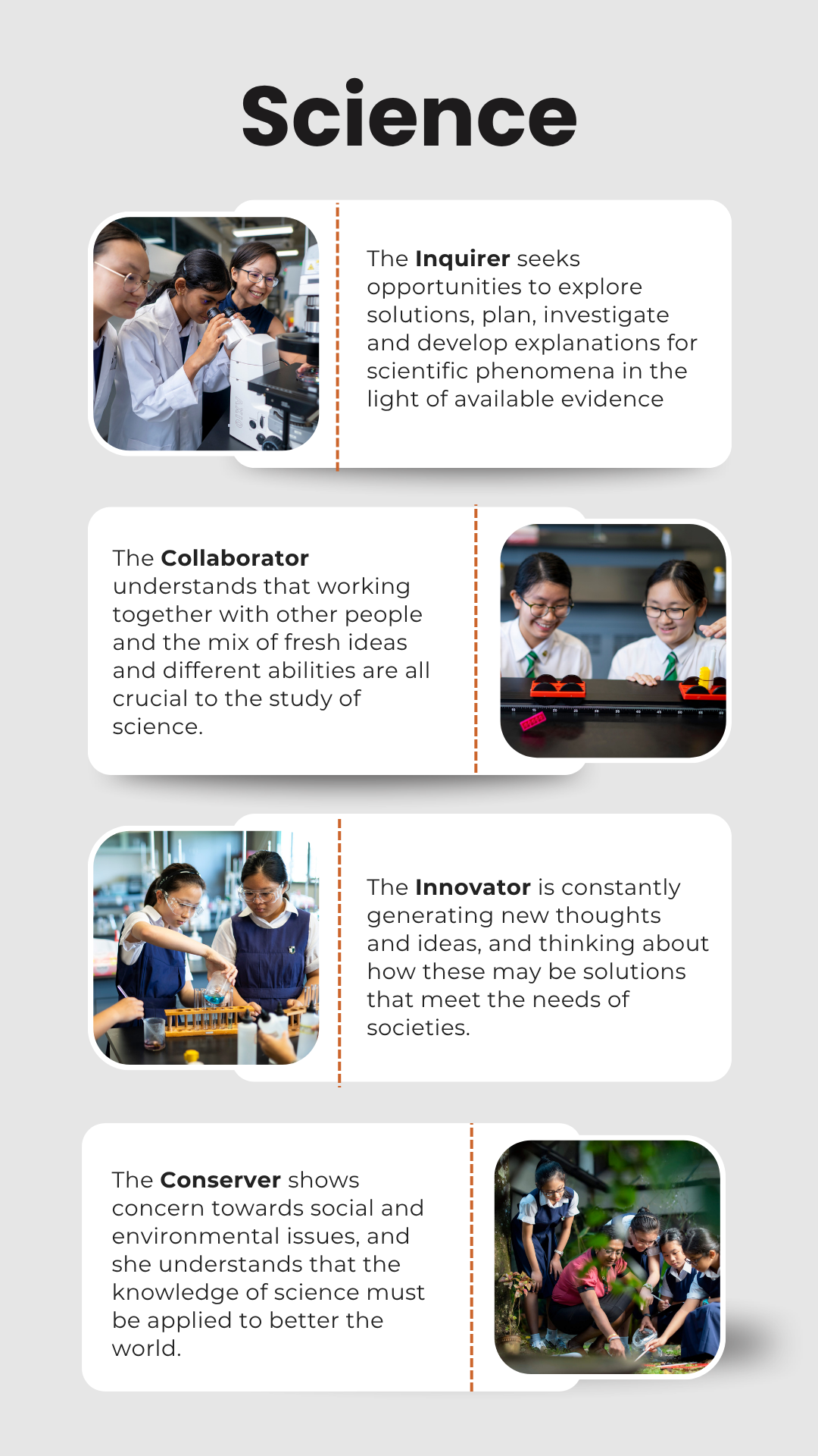 - Be engaged in science-related issues that concern their lives, the society and the environment